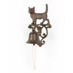 HOMESCAPES Cloche D’entrĂ©e Avec Support Mural En Fonte Chat