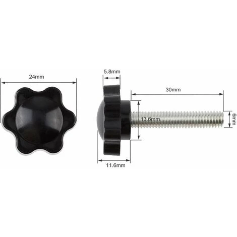 Chaque emballage comprend 10 vis à tête moletée M6 * 30 mm. Longueur du filetage: 30 mm / 1,18 pouce; Diamètre du filetage: M6, filetage métrique.