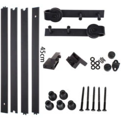 Ce kit de quincaillerie pour porte de grange coulissante a une longueur de rail de 183 cm et une capacité de charge de 150 kg.
