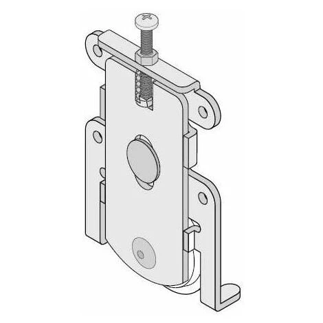 2x Chariot inférieur ; Pour porte coulissante ; SystÚme Blue V ; Sans cadre ; A visser (vis incluses) ; Pour support 18mm