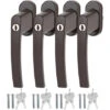 Béquille de porte en aluminium moulé sous pression avec ressort de rappel et rosace cache-vis à maintien de position par ressort.