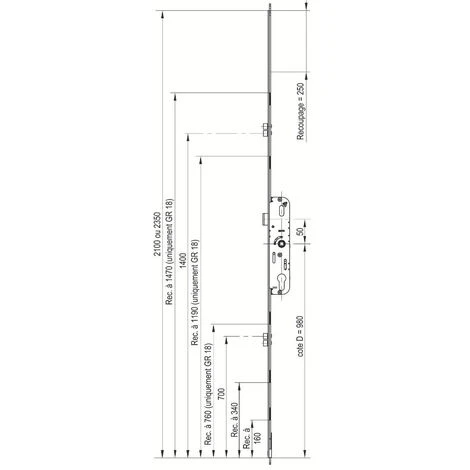 - Crémone à barillet européen R2 recoupable avec pêne 1/2 tour réversible, galets et pênes tringles pour porte-fenêtre PVC à 1 ou 2 vantaux.