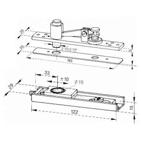 Bras déportés pour montage sur porte simple action, bras droits pour porte double action.