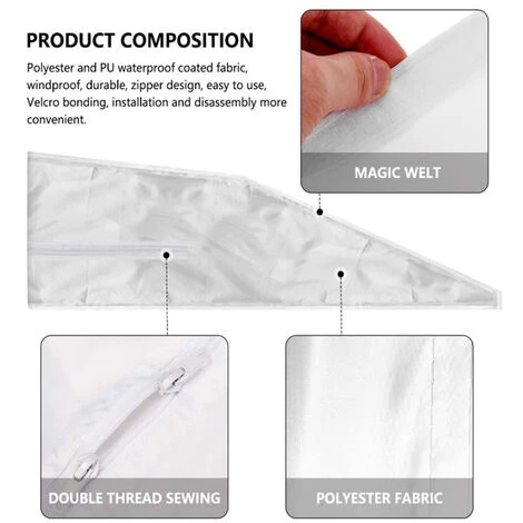 Matériau en polyester et tissu de revêtement PU, imperméable et ultraviolet, propre, facile à ranger. Double fermeture à glissière antidérapante et bande de crochet robuste de haute qualité. Vous n’avez pas à vous soucier de la climatisation.