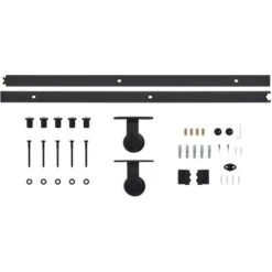 La livraison inclut 2 rails coulissants, 2 rouleaux, 2 boutoirs de porte, 1 glissiĂšre de sol, 2 blocs anti-sauts, 5 brides de fixation, ainsi que tout le matĂ©riel nĂ©cessaire. Remarque : La porte n’est pas incluse.