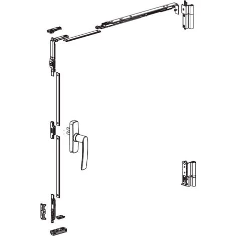 - une paire de paumelles de portée de 110 kg (art. 1401AI), compas moyen (art. 1448BI), kit de base (art. 1461I), goujon de raccord (art. 1559A) et crémone Gea (art. 0530BI).