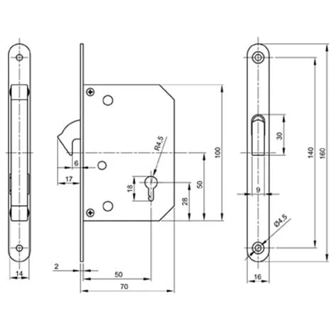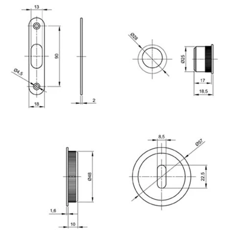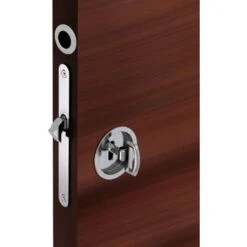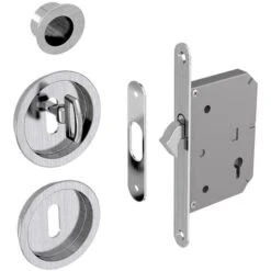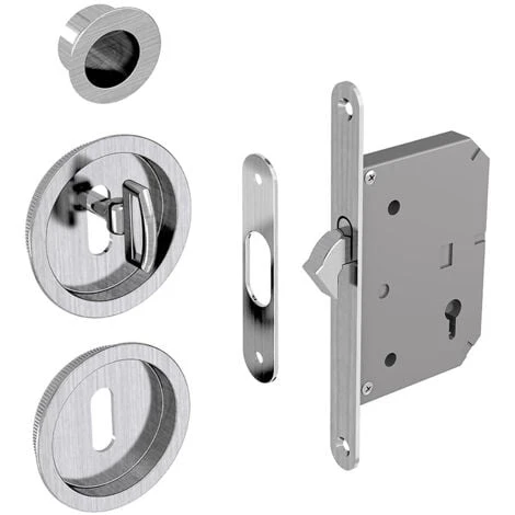 Serrure à crochet à encastrer avec poignées rondes et tire-doigt pour porte coulissante.