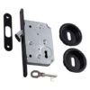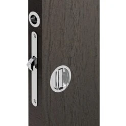 Serrure à crochet à encastrer avec poignées rondes et tire-doigt pour porte coulissante.