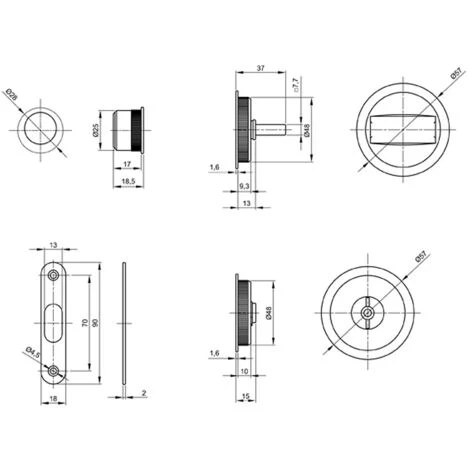 – 1 poignée ronde avec système de condamnation, Ø 57 mm