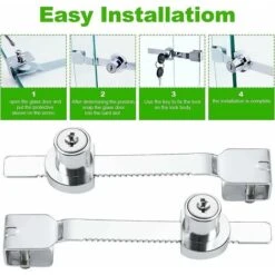 La serrure et les clés sont livrées avec un tampon de montage pour protéger votre verre fragile. Pas besoin de percer un trou, l’installation est rapide et facile. Il se glisse facilement sur le bord de votre porte vitrée.