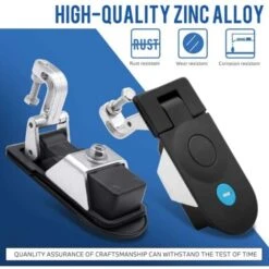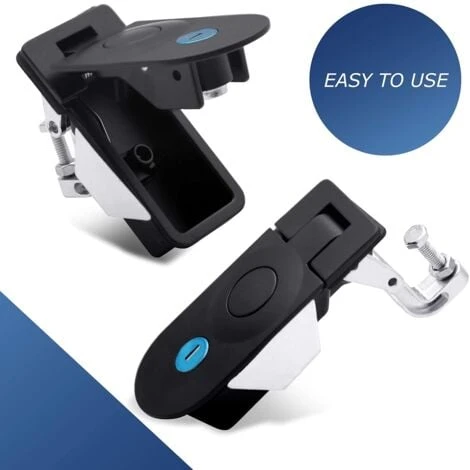 Description : Installation Fonctionnement par bouton-poussoir Livré avec 2 clés Taille du trou de montage : 90 mm x 35 mm Épaisseur de porte applicable : 1 ~ 5 mm Protection antivol, idéale pour les remorques de conducteurs de chevaux, camping-cars et caravanes Spécification : Matériau et finition : alliage de zinc, revêtement en poudre et acier , galvanisé Surface : noire Dimensions : env. 110 mm x 50 mm Plage de préhension réglable : 1,77 -2,25 (45-57 mm) Le forfait comprend : Serrure 2 pièces Clés 4 pièces Profondeur de la fente de montage Env. Plage de contrôle pour 0,00 -0,5 cm,