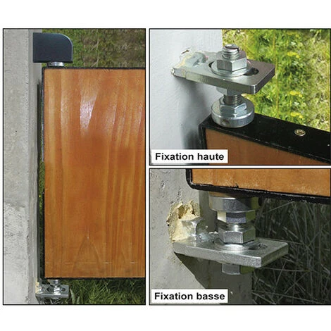 Avantage : on fixe la patte du haut puis on met en place le portail.