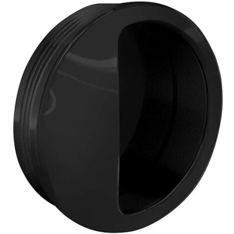 Poignée cuvette ronde à encastrer, en plastique noir, pour porte coulissante.