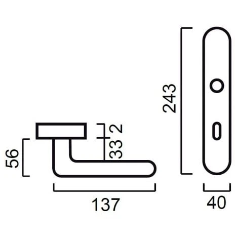 Poignée de porte sans ressort de rappel compatible pour toutes les portes d’entrée avec serrures à relevage (3 et 5 points).