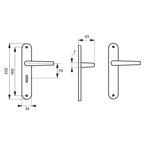 Plaques acier embouti. Béquilles aluminium fondu. carré acier 7 mm. Vis métaux sécables. Entr’axe de fixation 195 mm.