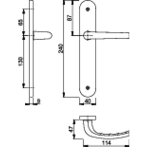 Poignée De Porte Sur Plaque Inox – Bec De Cane – EST-ZG 41-260 Série HOPITAL – Normbau