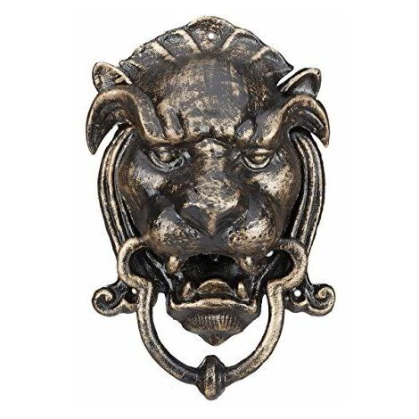 Heurtoir de porte en forme de tĂȘte de lion pour donner un style ancien nostalgique Ă votre porte d’entrĂ©e. Ce marteau de porte reprĂ©sente une alternative intĂ©ressante et originale aux sonnettes ou carillons de porte classiques. Donnez un air de manoir Ă votre porte d’entrĂ©e avec ce heurtoir design en fonte. L’anneau de frappe se trouve dans la gueule du lion, il suffit de l’actionner de haut en bas afin de toquer sur la porte.