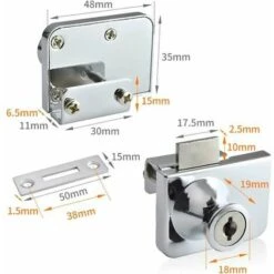 Serrure de porte en verre,Serrure en acier chromé,écran en verre de verrouillage,Serrure pour des portes en verre Serrure vitrine avec, pour la porte en verre de 5-8mm foret avec 2 clés
