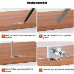 FACILE À UTILISER: serrure et clé avec tapis de montage pour protéger le verre fragile, élimine le besoin de percer. Deux options de montage différentes pour portes simples et doubles.