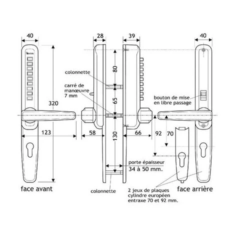 • Adaptable sur des portes d’épaisseur 34 à 50 mm