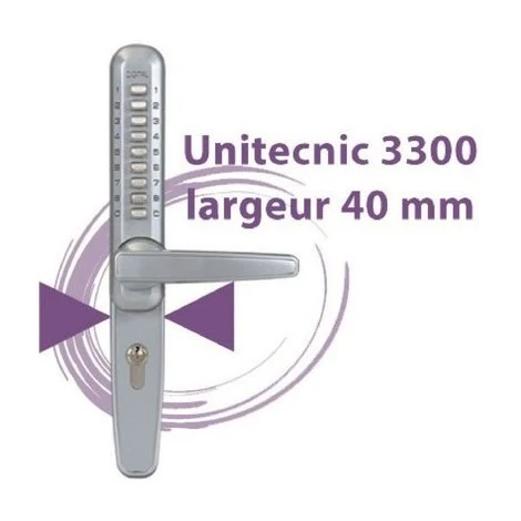 Serrure à code mécanique Unitecnic 3300 permet l’ouverture par code ou par clé et convient particulièrement aux menuiseries étroites.