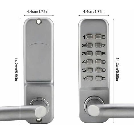 de passe recommandé est réglé sur 4-6 chiffres. Avec vis et manuel en anglais, facile à installer. Épaiss de porte applicable : 30-60 mm. Type applicable : intéri, extéri de la porte.Convient pour les portes de bureau, les portes intéries,