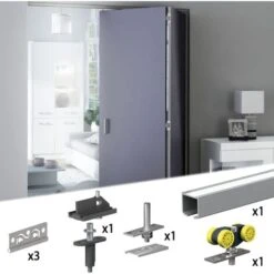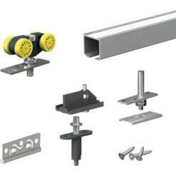 Ce système comprend un rail d’aluminium et tous les accessoires pour installer facilement des portes coulissantes !