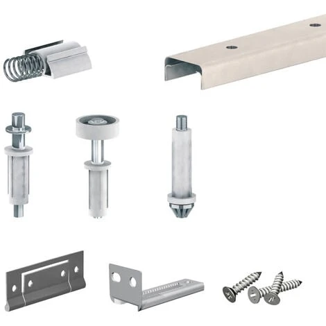 Ce système comprend un rail acier peint et tous les accessoires pour installer facilement des portes coulissantes !