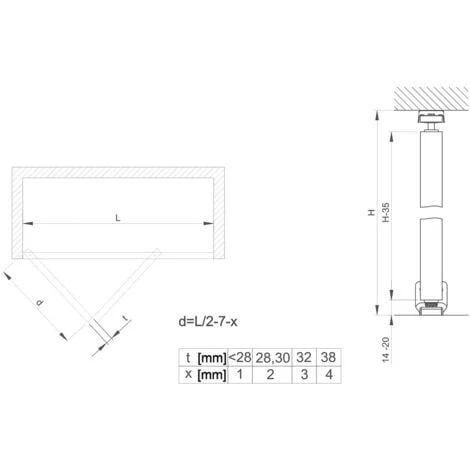 Épaisseur du panneau : 18 à 35 mm.