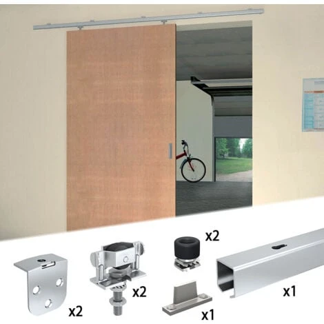 Système coulissant Slid’Up 1200 à montures réglables pour 1 porte extérieure – rail 1,95 m acier galvanisé.