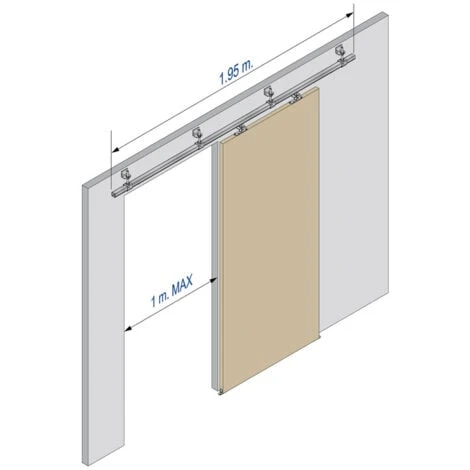 Système coulissant Slid’Up 2000 pour 1 porte extérieure 50 mm max – rail 1,95 m en acier galvanisé – coulissant suspendu.