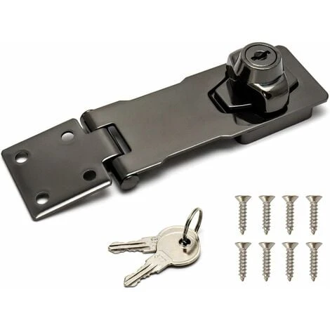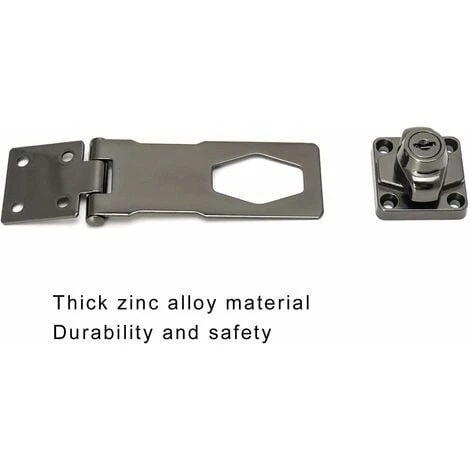 Matériau de haute qualité : alliage de zinc épais, finition chromée, robuste, durable et sûr. Installation facile : installation rapide et facile, vous n’avez pas besoin de clé pour le verrouiller. Largement utilisé : utilisé pour le cadenas, la serrure de porte de sécurité, la porte d’entrée, la porte de garage, la boîte en bois, le tiroir de fenêtre, l’armoire et d’autres meubles pour plus de sécurité. Haute sécurité : matériau épais, durable et solide, pas de déformation, pas de décoloration, pas de rouille, parfait pour garder vos petits objets en sécurité. Contenu de la livraison : 1 jeu de serrure de porte de 10,2 cm + 6 vis de montage + 2 clés Caractéristiques : trappe QWORK avec clé, installation facile Utilisé pour cadenas, serrure de sécurité, porte d’entrée, porte de garage, boîte en bois, tiroir de fenêtre, armoire et autres. les meubles ajoutent une sécurité supplémentaire. Taille : 4 (10cm). Contenu de la livraison : 1 jeu de serrures de porte 4 (10cm) + 6 vis de fixation + 2 clés